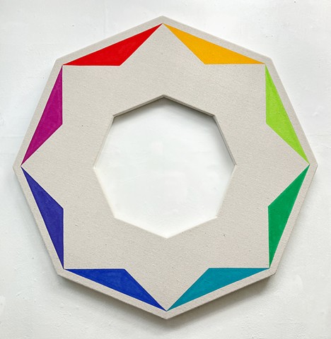 untitled, 2026, acrylic on unprimed canvas, 39 inches in diameter